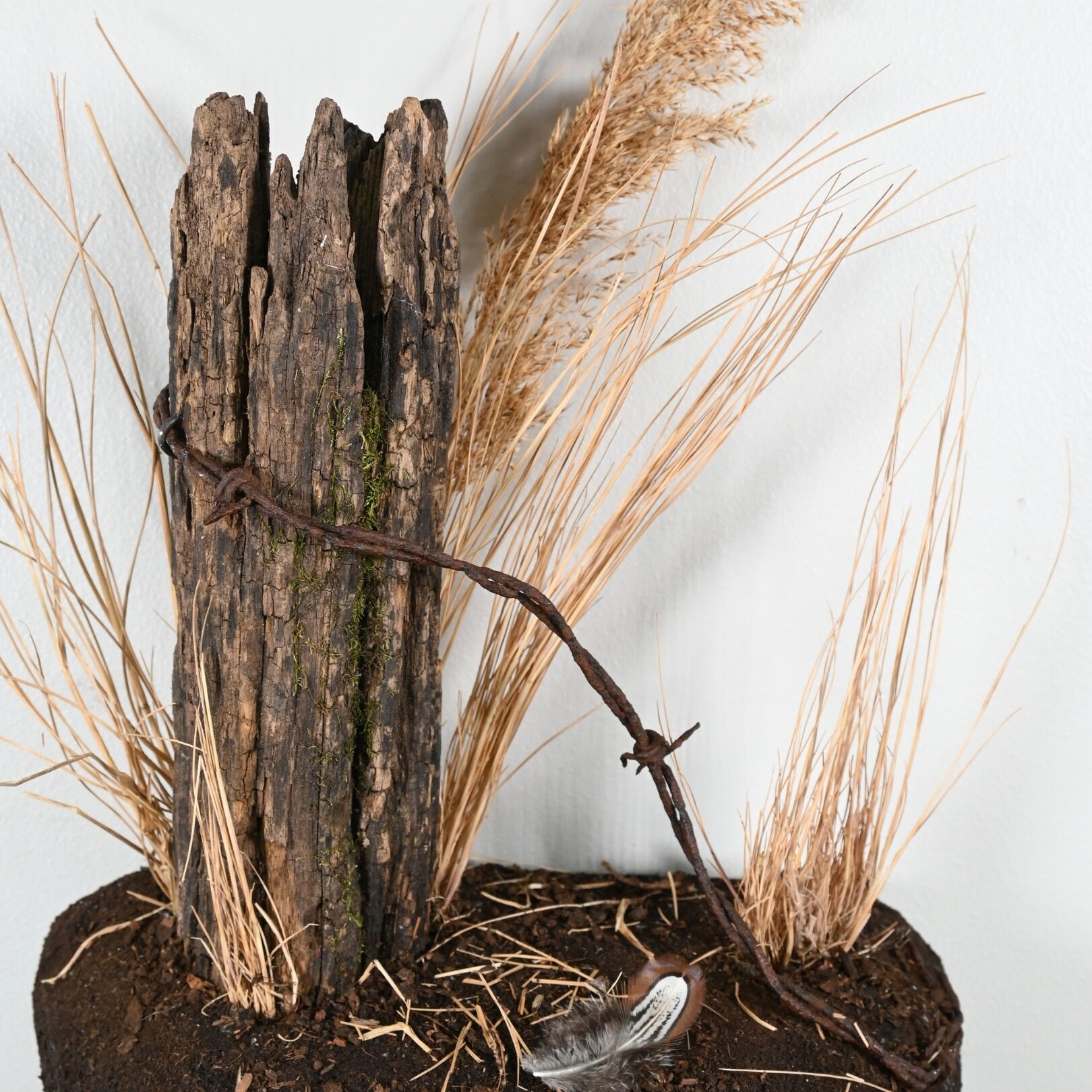 This wall scene features dry prairie grasses and a rustic fence post with barbed wire, creating a classic upland setting perfect for that cool flying Pheasant on your wall, with no ties. The warm, earthy tones and open-land feel highlight the natural environment where these birds are most often hunted. It’s an ideal way to showcase your mount with a touch of authentic prairie character.